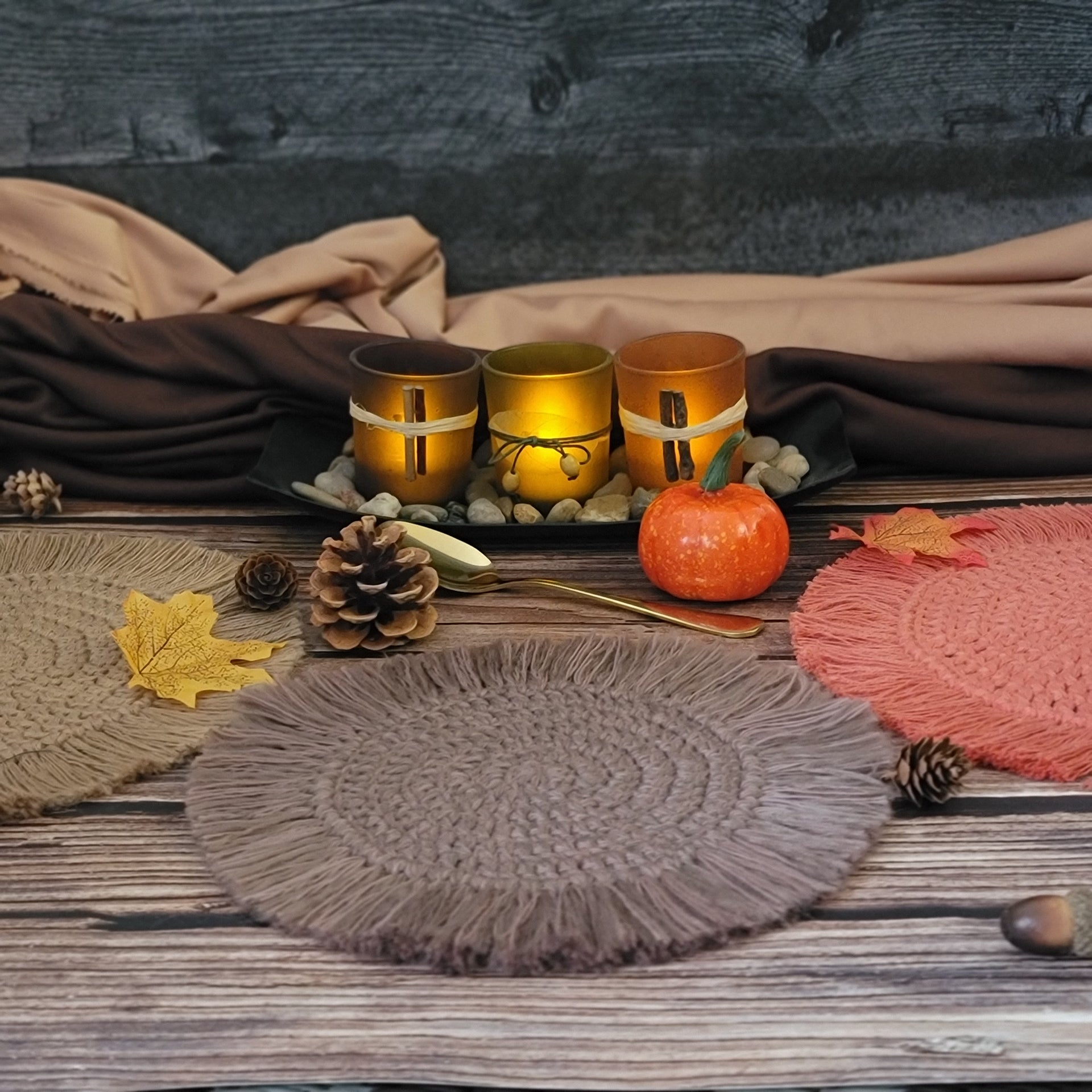 Bespoke Order - Set of (Two 7" and One 5") Boho Coasters each with 1.5" fringe - Select Colors