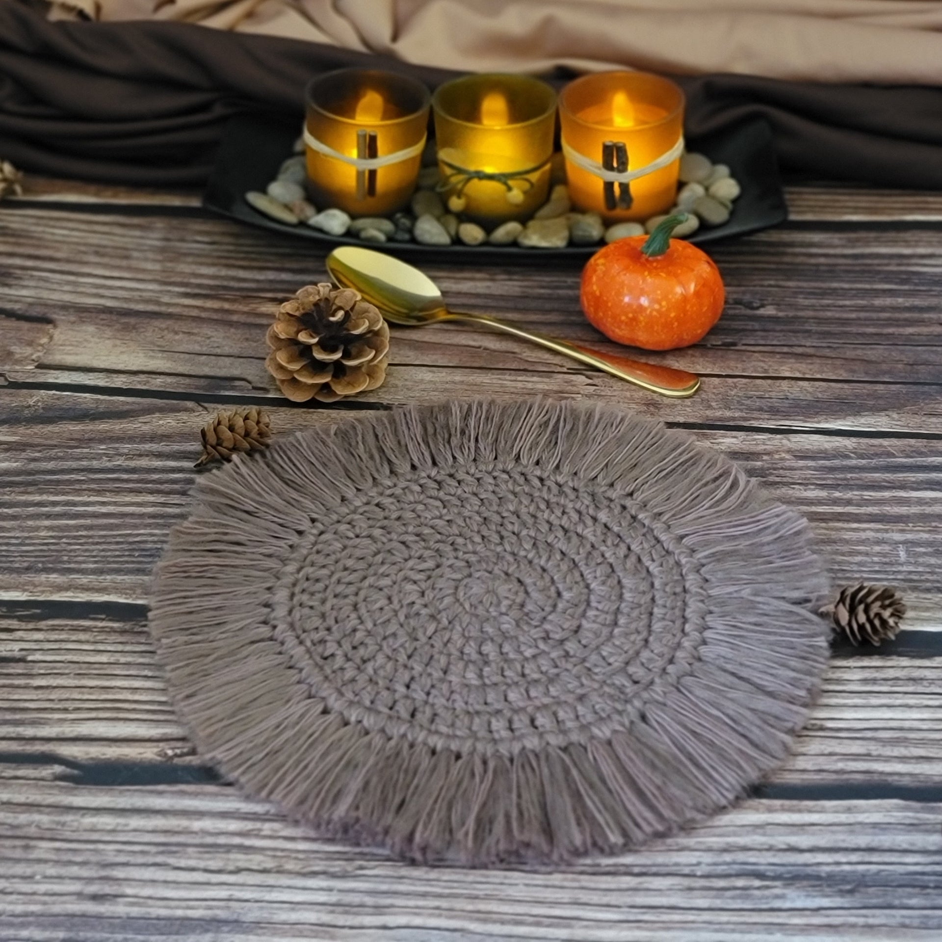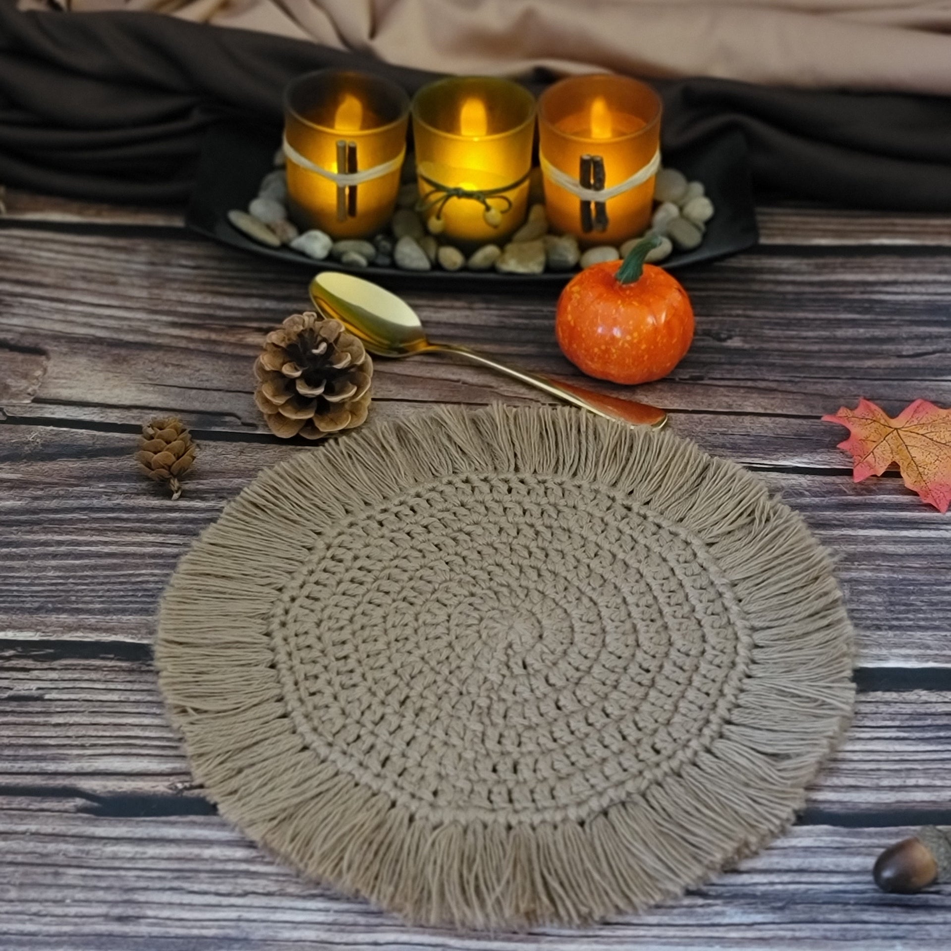 One - 7" Boho Coaster with 1.5" fringe - Cashew ($25.00 each)