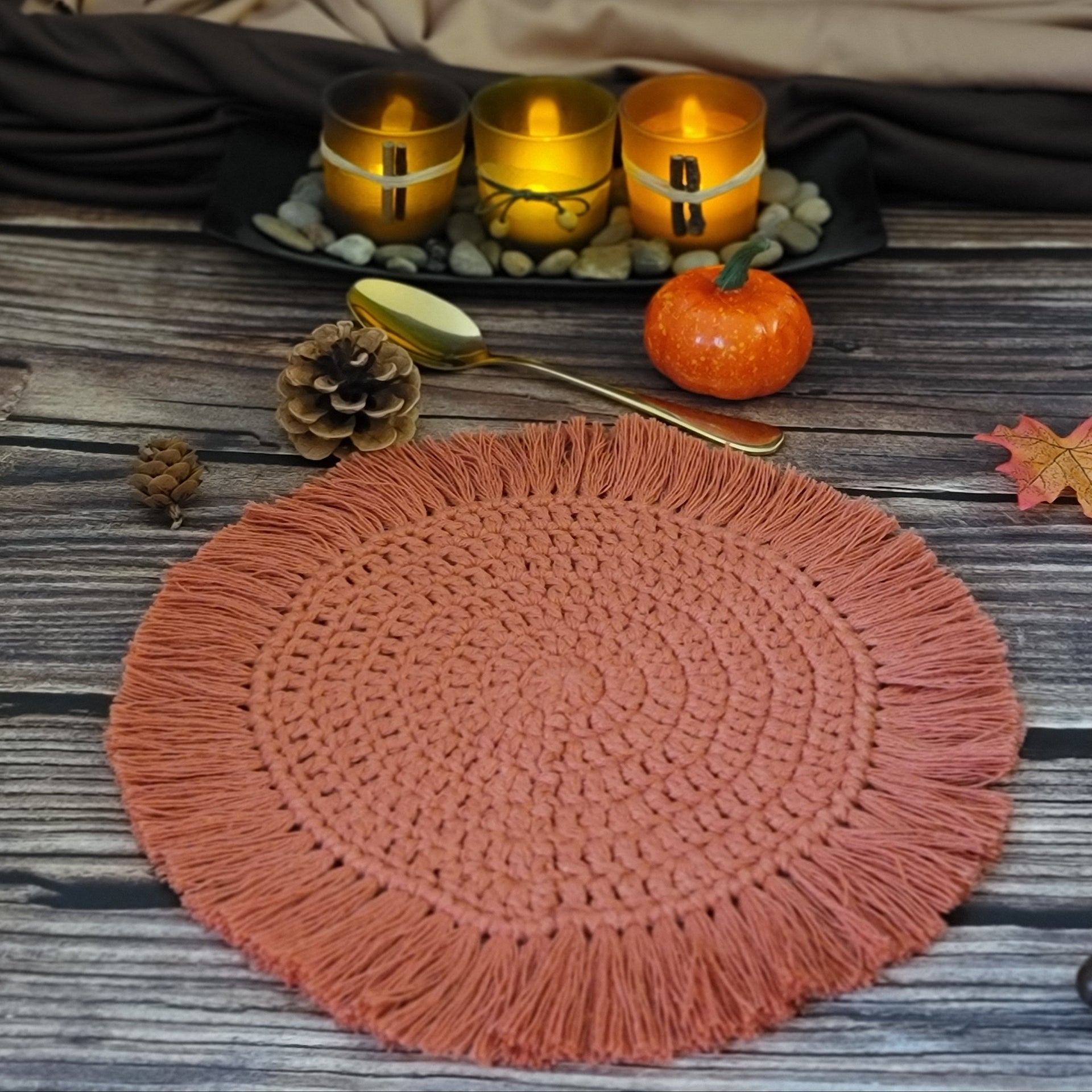 One - 7" Boho Coaster with 1.5" fringe - Rust ($25.00 each)