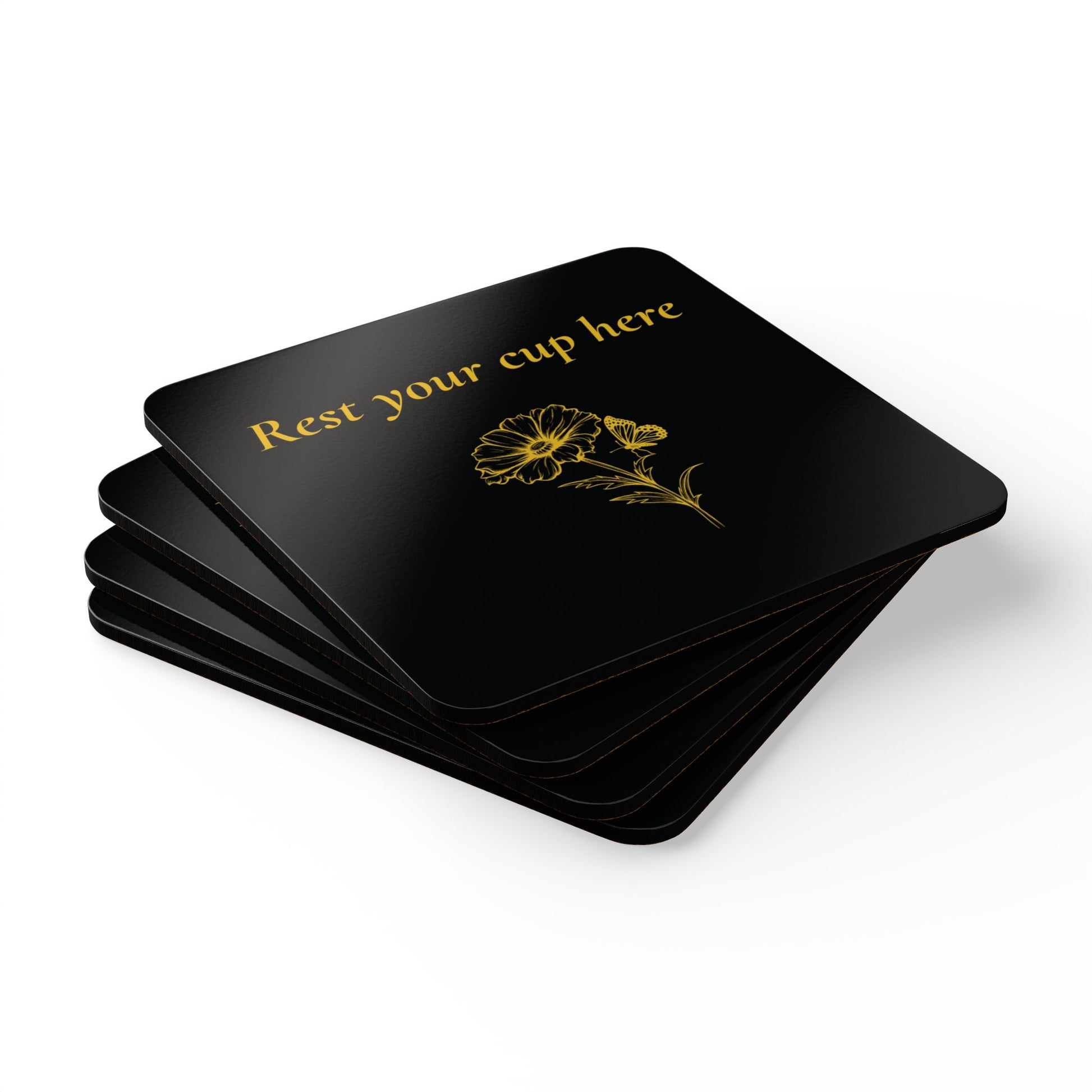 Rest Your Cup Here – Black Corkwood Coasters (4-Piece Set)