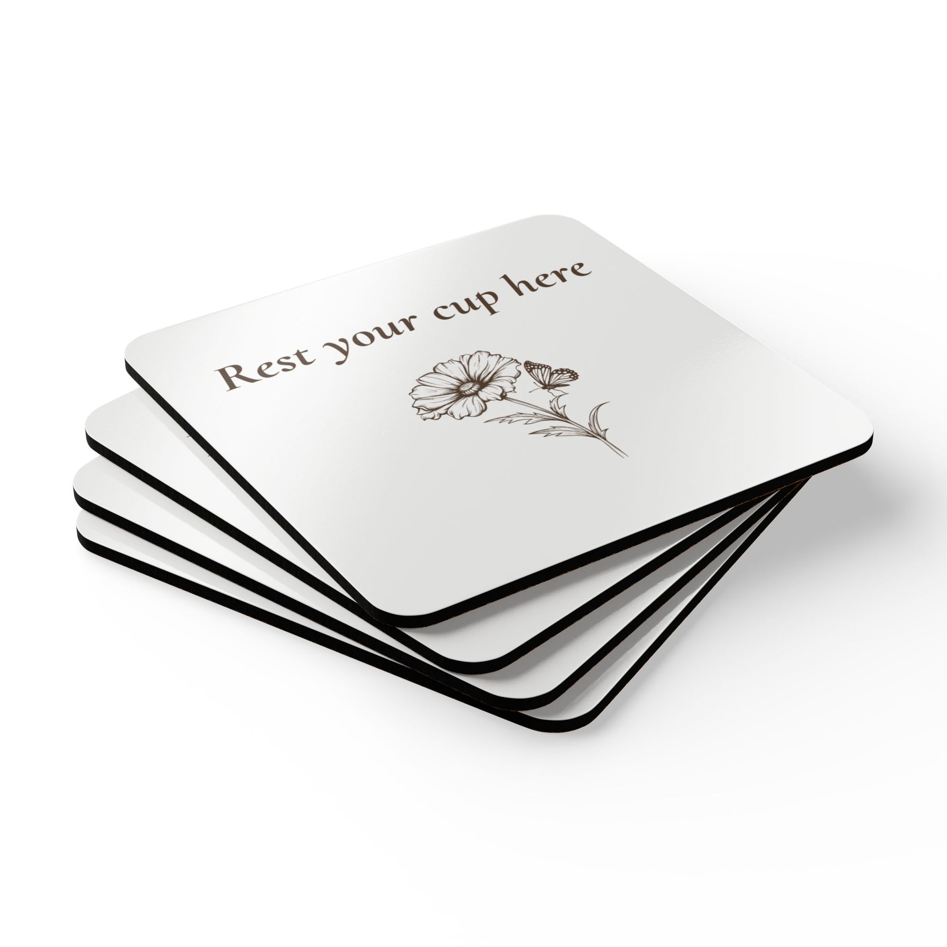 Rest Your Cup Here – White Corkwood Coasters (4-Piece Set)