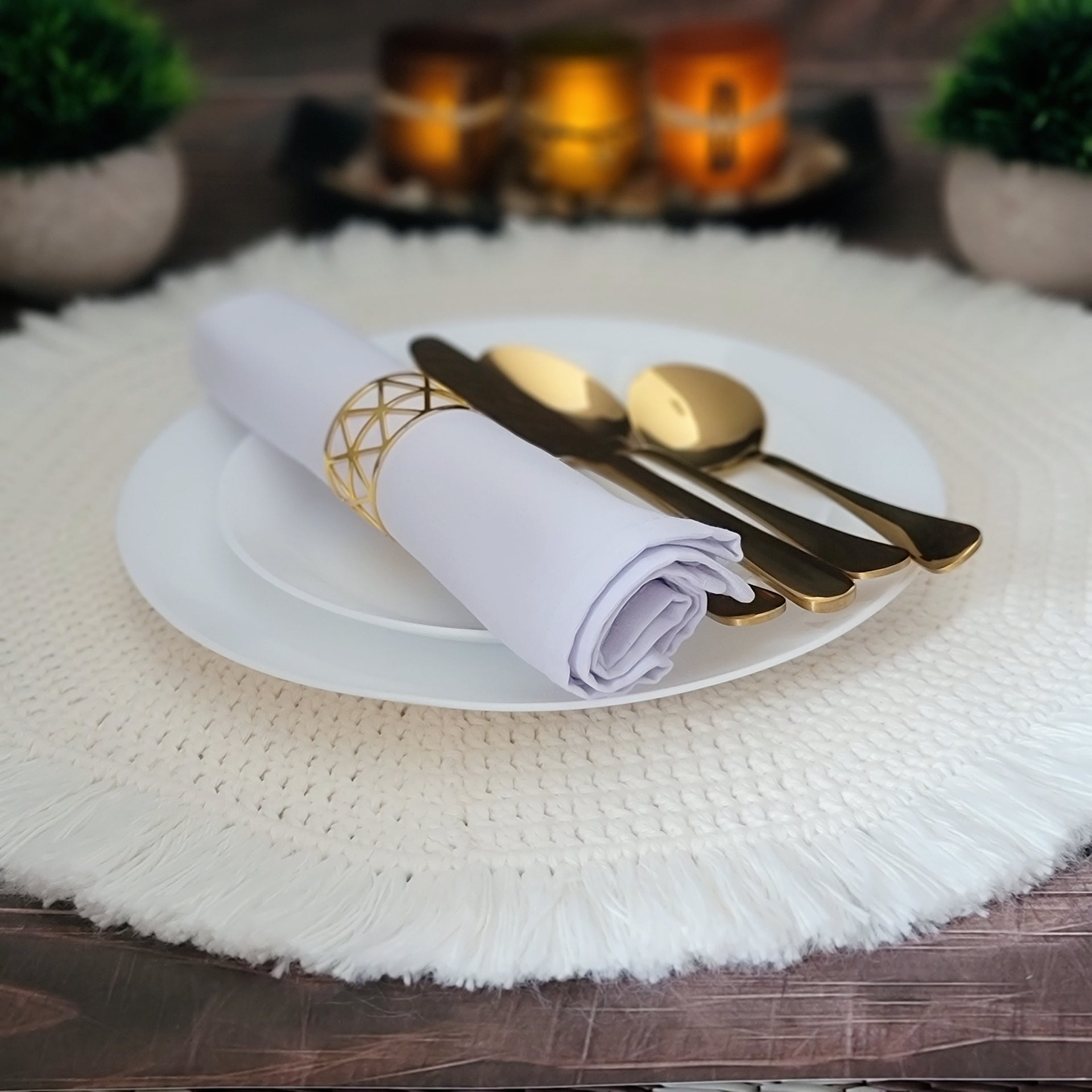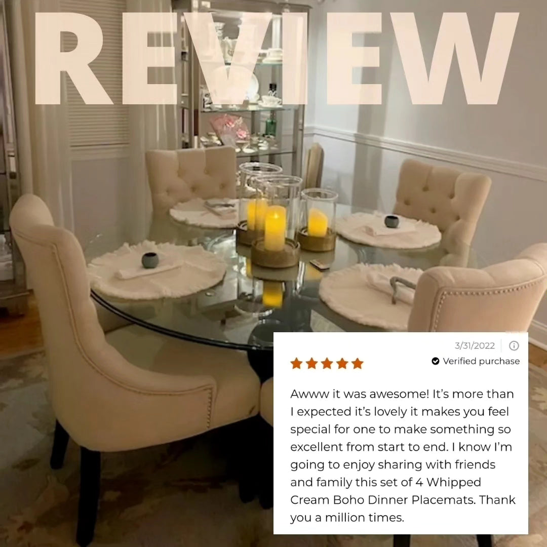 Perfect for elevating your everyday table or special gatherings. Each placemat features a 15" base diameter with 1.5" fringe edging in my signature whipped cream shade.